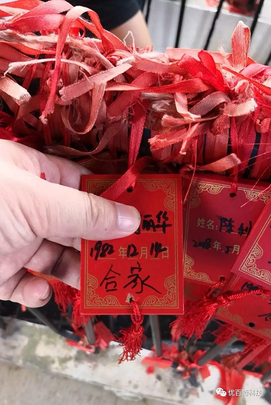 走进鼎的内部,沿楼梯可以上到二层,东南西北四个方向的栏杆上一层一层地挂满了寿牌,每个寿牌的背面都写着名字和生日,寄托着来这里祈福人的心愿:祝愿最爱的人长寿平安!