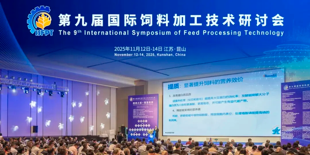 2025年11月13—14日,第九届国际饲料加工技术研讨会在江苏昆山成功举办。本届研讨会以“精微之道·智造未来”为主题,汇聚了来自中国、荷兰、秘鲁、马来西亚等国家和地区的高校、企业及行业代表520余人,聚焦饲料行业的前沿科技与未来发展。国际饲料加工技术研讨会是我国规模最大、层次最高、影响力最强的饲料加工技术国际性盛会之一,是集中展示饲料加工工艺技术与设备研究成果的重要交流平台,对提高我国饲料加工工艺技术水平、促进饲料营养与加工的有机结合起到了非常重要的指导和推动作用,受到学界和业界广泛关注、充分认可与高度评价。